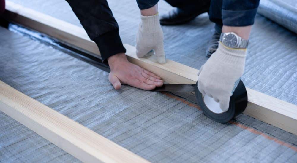 - Laat de stroken overlappen. Leg de stroken van het dampscherm niet netjes naast elkaar, maar zorg voor een ruime overlapping van minimaal 10 centimeter. Zo voorkom je naden waardoor de lucht kan ontsnappen.