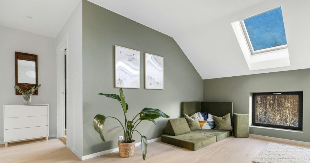 - Het hellend dak langs binnen geïsoleerd is