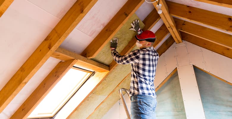 Hoe kun je isolatiemateriaal aanbrengen tussen de balken van een schuin dak?